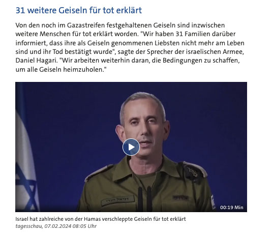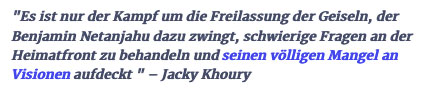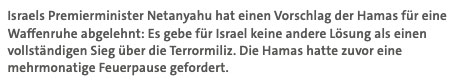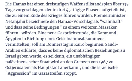 Es geht nun um den Tod der 100 verbliebenen Gefangenen als Geisseln in Gaza, für die Sieg über die Hamas, das heisst deren Auslöschung, und die Eroberung des Landes Gaza ohne Palästinenser inklusive Westjodanland für ein Grossisrael.