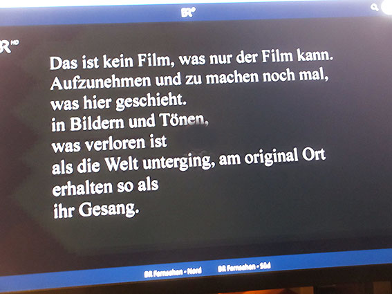 Zwischen dem dem Farkas-Film von Über Leben in Demmin und diesen Gesängen aus Demmin nach Mitternach schoben sie eine Sendung die sie KINO nennen. Mit Berichten über das in München zur Zeit laufende Dokumentarfilmfestival. Das war der Preis.