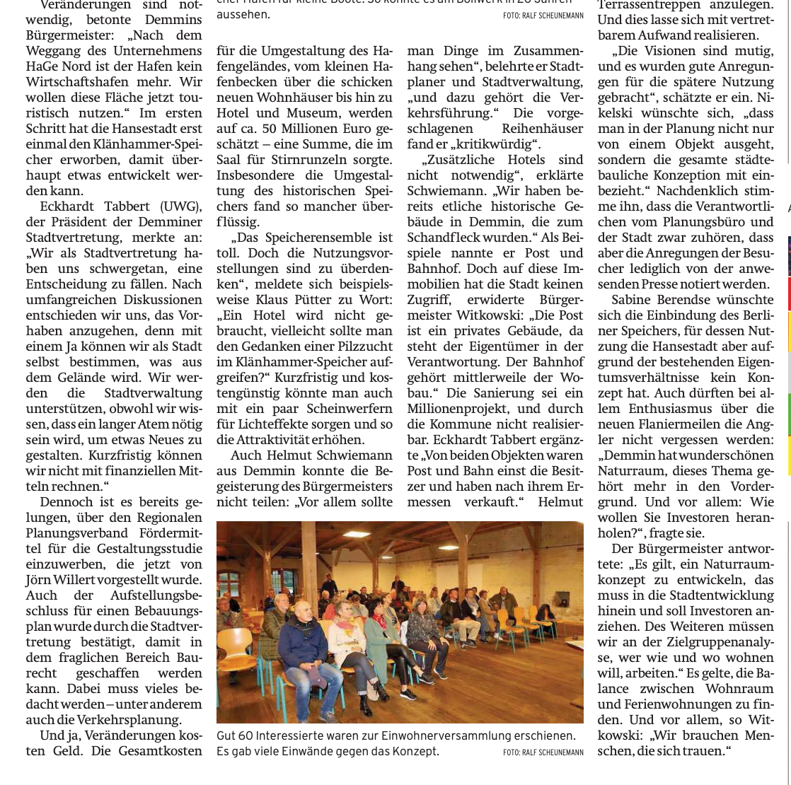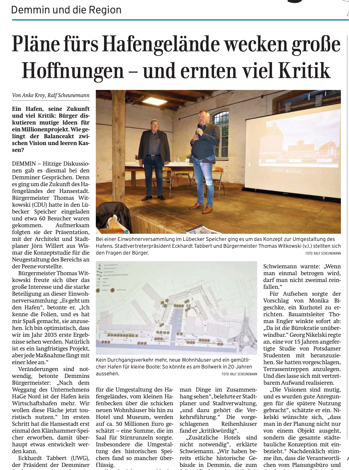Vor einiger Zeit überlegte die Stadt aus einer eigenen Initiative das historische "Haus Demmin", nun eine Ruinenlandschaft am Rande des Kerns, durch eine aufwendige Machbarkeitsstudie (100 000 Euro) . Ohne weitere Aktivität einer Realisierung bisher.