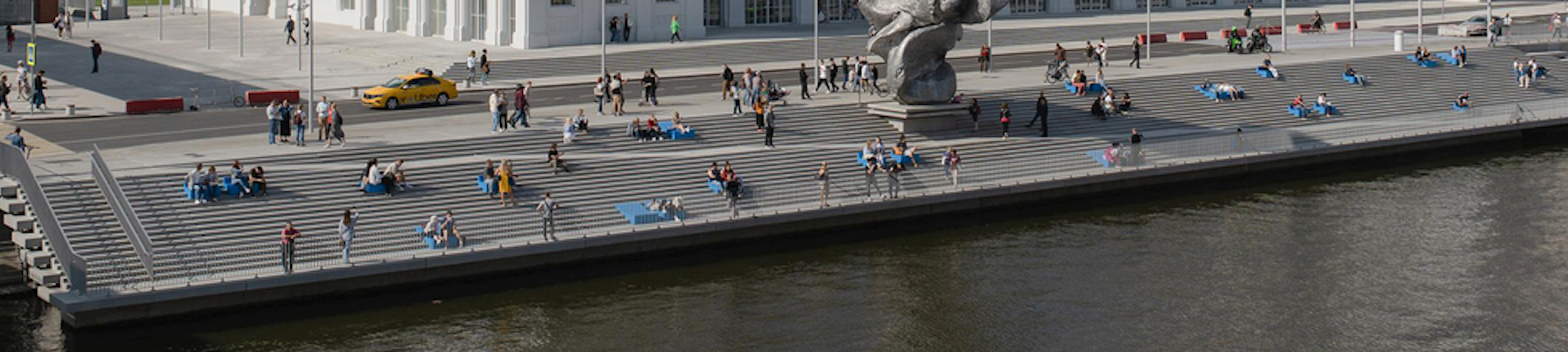 Auf unserem Weg das Warum zu erforschen und Lösungen von innen zu finden, sahen wir ein Beispiel ähnlicher Statd-Erneuerung für heutige Aufgaben wo wir es nicht erwarteten in einem Kultur(!)haus in Moskau durch Renzo Piano realsiert. An einem Fluss auch mit nun vielen Menschen ernstgenommen dazu.