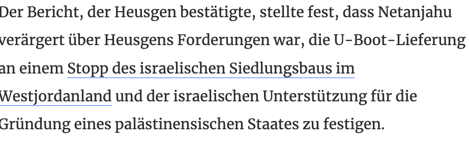 Abend in der Nacht im TV ARD über U-Boote für Israel 1 Mrde das Stück jetzt wieder eines fertig.... heute morgen EU-Beschlüsse über Weigerungen neuer Waffen für Israel.. Warum U-Boote die Atomköpfe tragen können für einen Land im Krieg wenn man weiss wo sie das haben ...