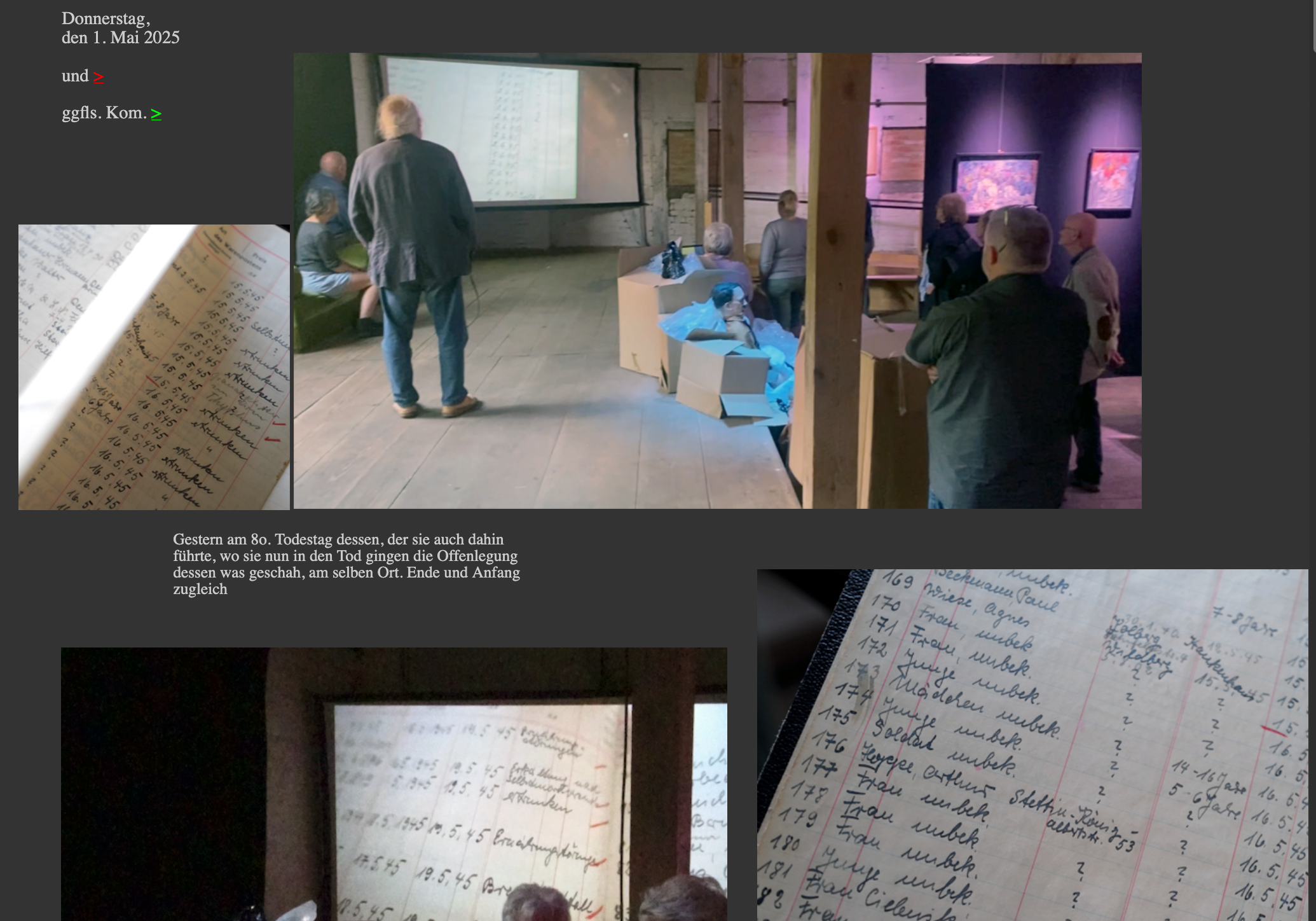 Wie das anfing mit dem Vorschlag für Greifswald, dem LandesMuseum dort nach der C.D.Friedrich was zu machen mit Schlössers Bildern vom brennenden Demmin und wie die Idde aufkam zum 80. Jahrestag des Kriegsendes, und was nun daraus wurde, nachdem Greifswald ausfiel und wir in Demmin es nun selbst machten, so. Mit unserem Renterverein von N. und aus den Schwarzarbeiten der Post-DDR im dem Dorfe.