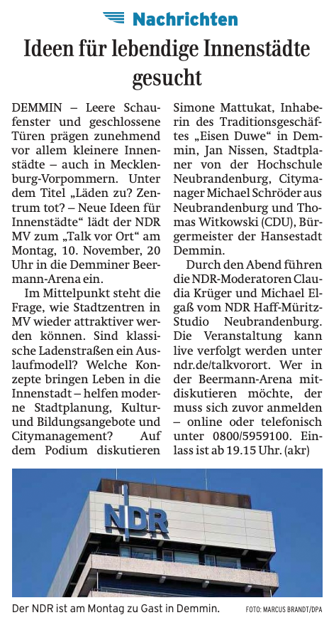 Die alte Demminerin vom Markt, heute in Münster lebend, würde sofort kommen, wenn sie dort wieder wohnen könnte.