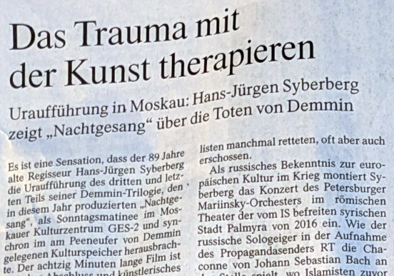 Was da stattfindet, trennen müssen. Wichtig ist, dass die Filme gezeigt wurden, dort, intakt in der russischen Version, schwierig aber auch rettend in ihrer formalen Rätselhaftigkeit. Und da ist die Botschaft einer Möglichkeit zu verbinden, was zur Heilung nötig ist.