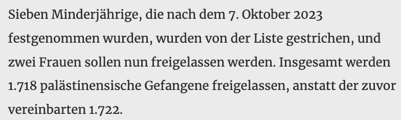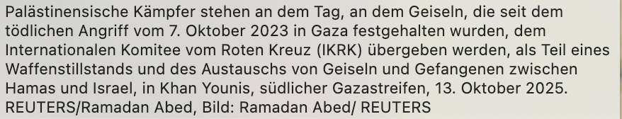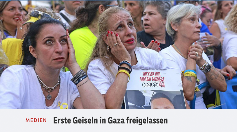 So erwarten in Israel die Menschen ihre Geisseln. Von den Hunderten (2000) Palästinensern, die ihre Gefangenen begrüssen, sehen wir nichts. Wo, wohin. Gaza ein Wüste, Westjordanland enteignet. Die Häuser abgerissen.