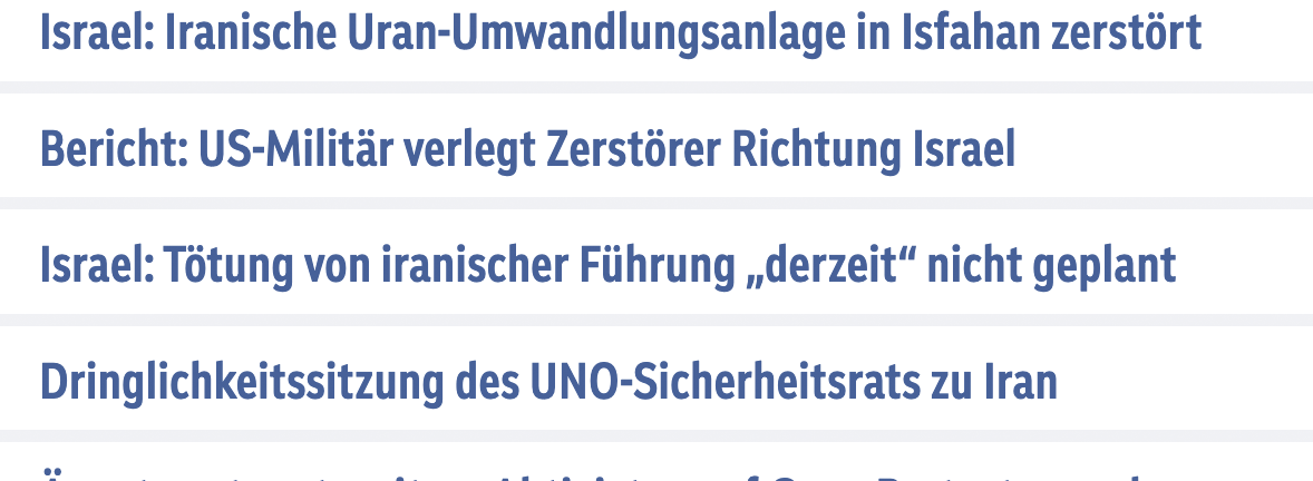 Nachrichten, authentisch, von der anderen Seite fehlen. Ein iranisches HAARETZ ist nicht zugänglich.