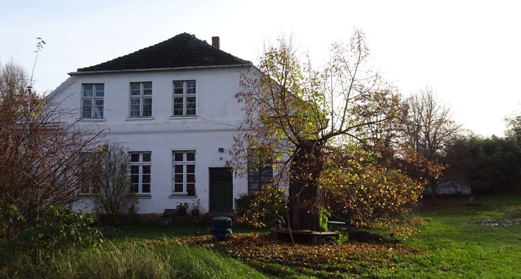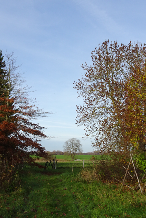 Die Brücke über den Graben aus dem wir Demmin haben brennen sehen, weiss und hinüberführend wieder über Felder und um Wald am Horizont.