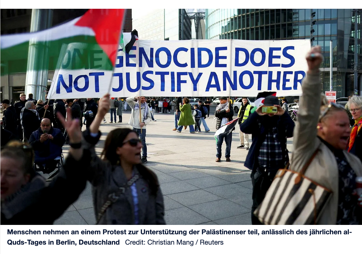 Indem es die Menschenrechtsverletzungen Israels nicht bekämpft und den Kampf gegen den Antisemitismus als Deckmantel für die Schrumpfung seines eigenen demokratischen Raums nutzt, weiß es Staatsräson. Tatsächlich wird das, was einst ein Ausdruck des deutschen Engagements für die Opfer des Holocaust war, jetzt verwendet, um Israels expansionistischen Militarismus und systematischen Verbrechen in Gaza zu unterstützen.