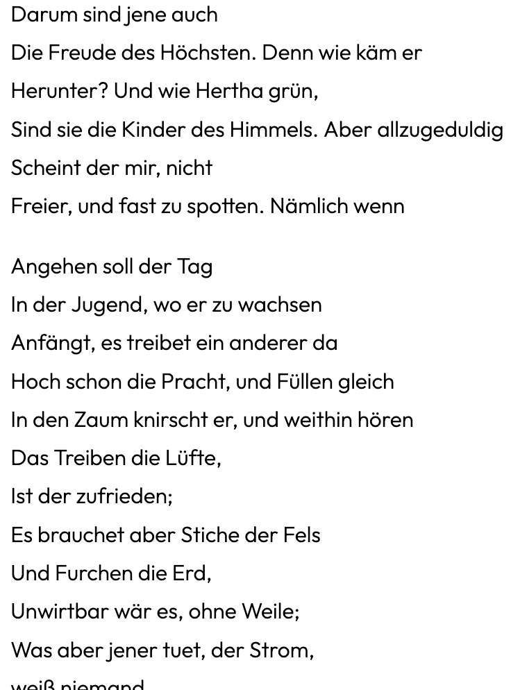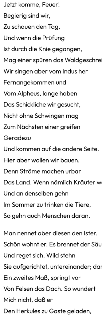 In diesem Zusammenhang auch wurde die Frage wichtig wie unsere Zeit mit Hölderlin umgehen kann. Mit Verlusten und auch Gewinnen. Verluste in den Beispielen wie die Donnau heute aussieht. Und Gewinnen, wie wir den Text heute erhalten und möglich machen, auch mit unseren Apparaten.