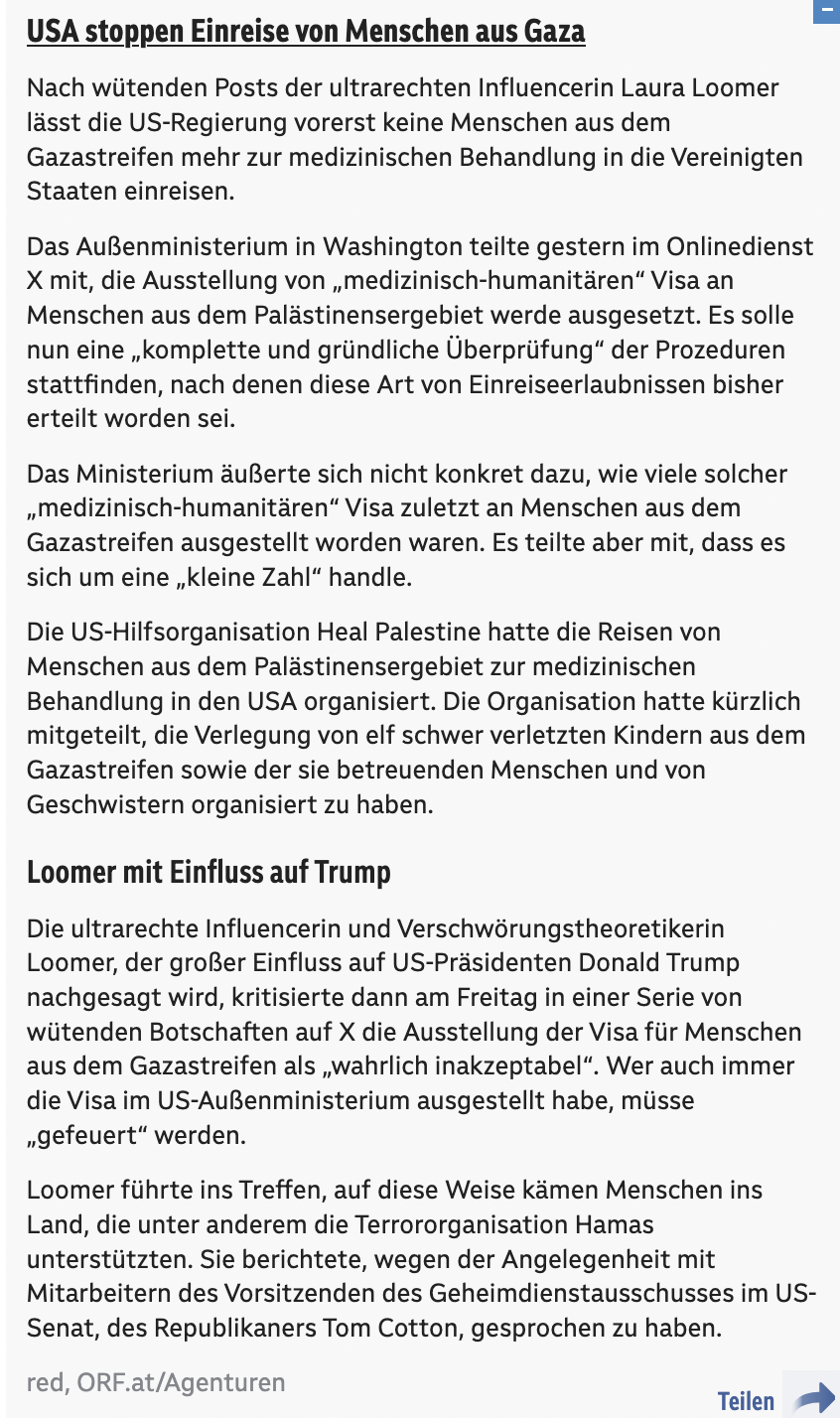 "Für jedes Opfer vom 7. Oktober mussten 50 Palästinenser sterben. Egal, ob Kinder. Ich spreche nicht aus einem Gefühl der Rache, sondern übergebe eine Botschaft für zukünftige Generationen. Es gibt nichts, was wir tun können; sie brauchen von Zeit zu Zeit eine Nakba, um den Preis zu spüren." Boom.