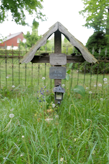 Und in der Mitten das hölzerneKreuz unten dem Dach aus Schindeln vom fernen See in den Bergen geborgen hier.