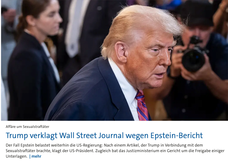 Trump wütet wegen Epstein-Bericht – und verklagt „Wall Street Journal“ auf 20 Milliarden Dollar