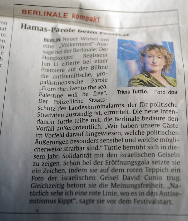 Remember the golden stones in Charlottenburg. Because of them, everything is permitted to us – absolutely anything – including ethnic cleansing, which Riba, of course, places in quotation marks, and even genocide. After all, her great-grandfather was murdered.