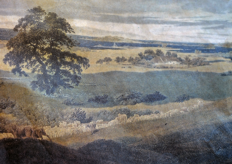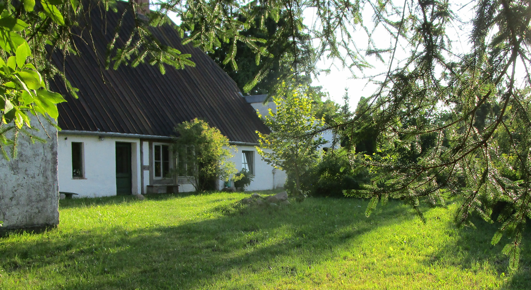 Das Guts-Haus noch im sommerlichen Morgendunst verborgen. Der Turm aus Demmin noch nicht sichtbar mit verlorenen Häusern ohne Kern zu einander des Dorf nach dem Verlust des Stadt-Gutes. Geben wir ihnen einen Sinn.