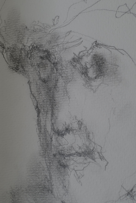mit Blicken nach innen suchend