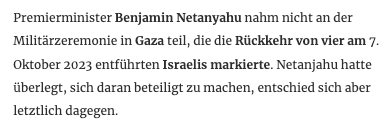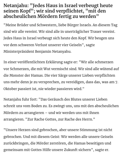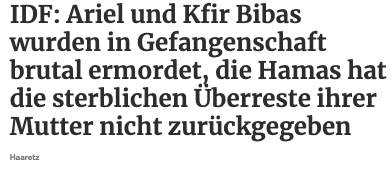 Viele der bisher übergebenen Geisseln berichteten, dass sie am meisten Angst -Todesangst- hatten vor den Aktivitäten der israelischen IDF.