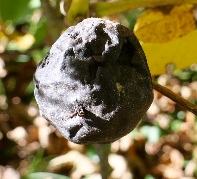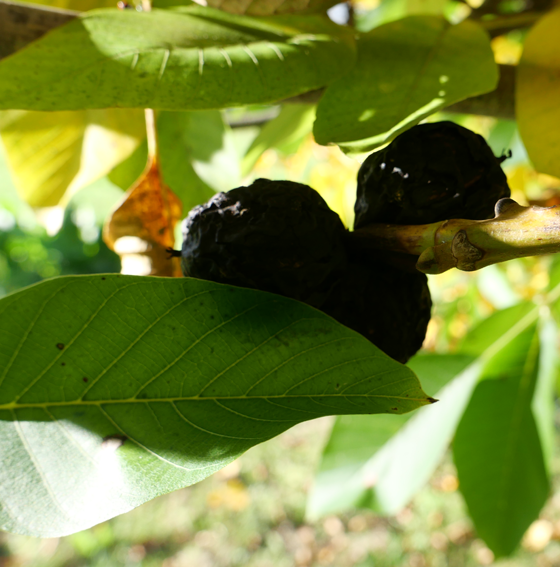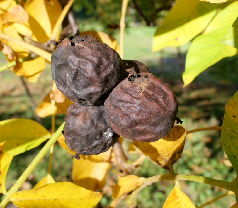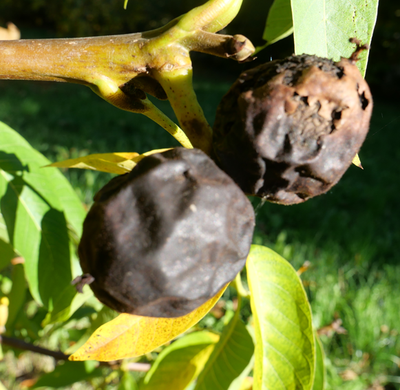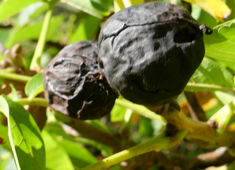 Hängen am Walnussbaum schwarze Nüsse, ist das ein Anzeichen eines Walnussfruchtfliegenbefalls. © dpa/Rolf Haid
