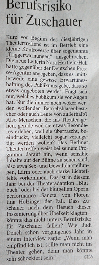 Immerhin soviel Platz dafür war noch da für sowas und nannten es Freiheit oder Demokratie: "Berufsrisko für das Publukum".
