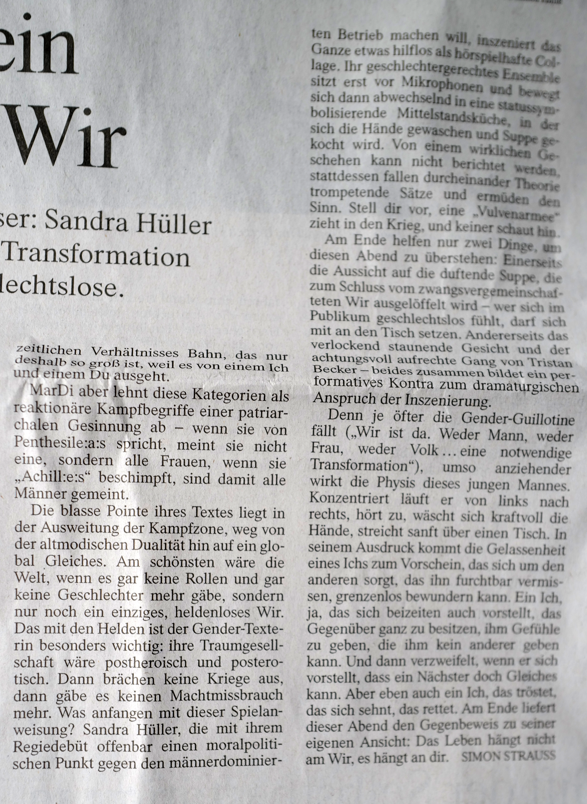 Als aktuell das Geld knapp wurde, forderten auch die Theater- leute ihre Kunst nicht zu vergessen. Und sie meinten auch solche.