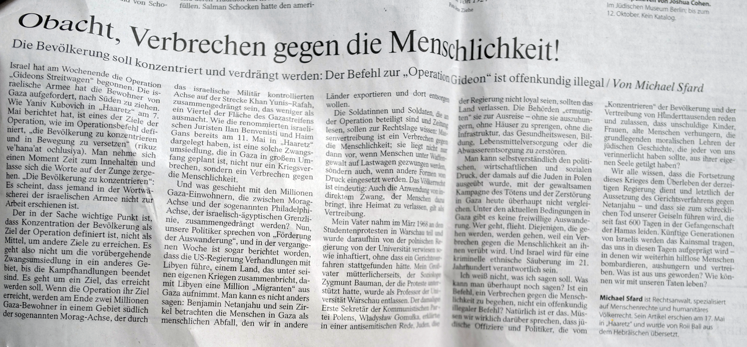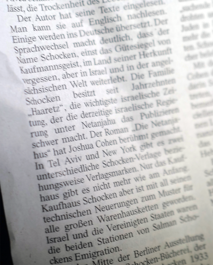 Der Bericht über das jüdische Museum in Berlin mit der Ausstellung zu Schocken machts möglich . Ja Schocken war der Gründer auch von HAARETZ aktuell. Mit solchen Texten täglich. Widerstand in Deutschland heute. Aus Israel .