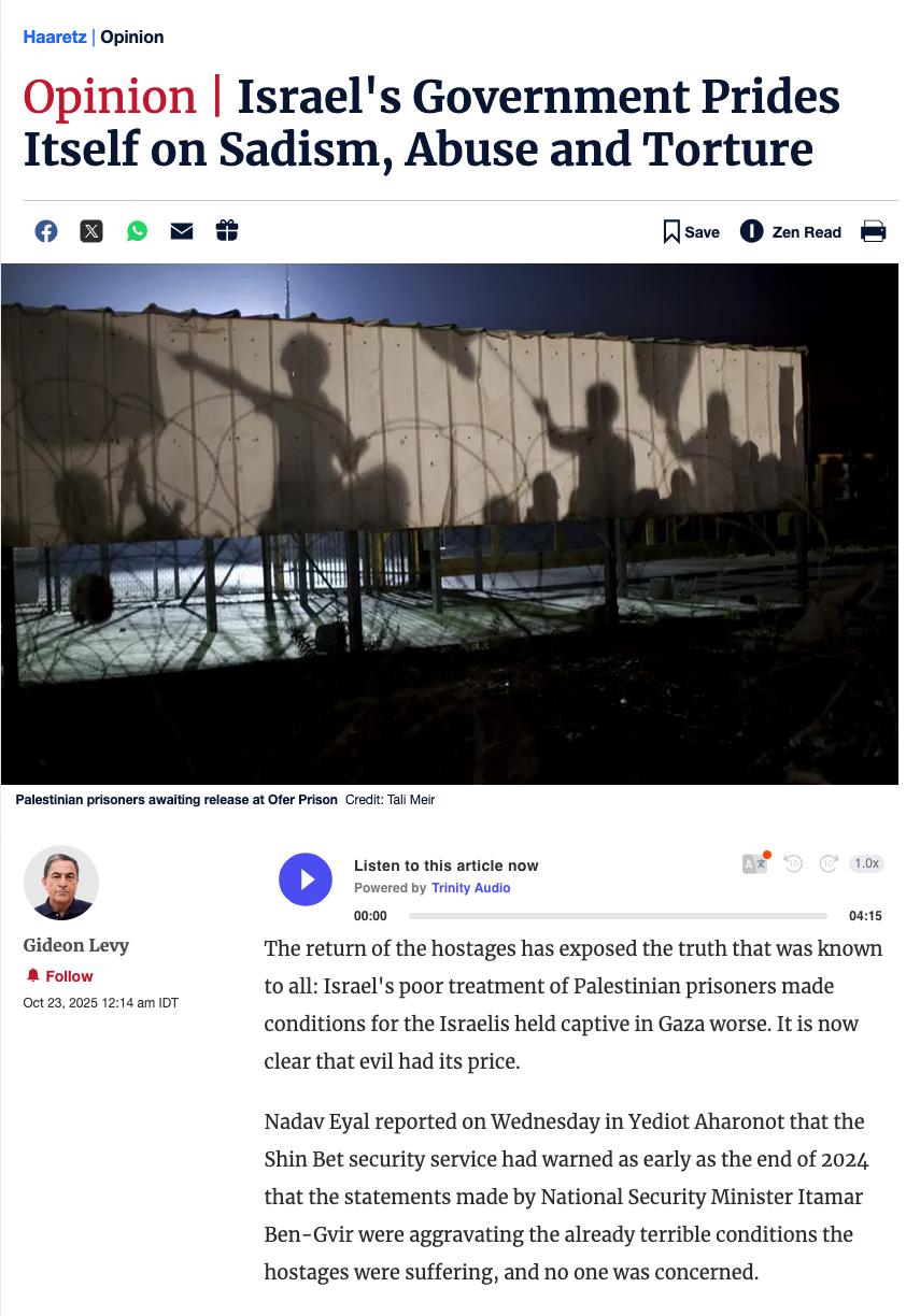 Die Rückkehr der Geiseln hat die Wahrheit aufgedeckt, die allen bekannt war: Israels schlechte Behandlung palästinensischer Gefangener machte die Bedingungen für die Israelis, die in Gaza gefangen gehalten wurden, noch schlimmer. Es ist jetzt klar, dass das Böse seinen Preis hatte.