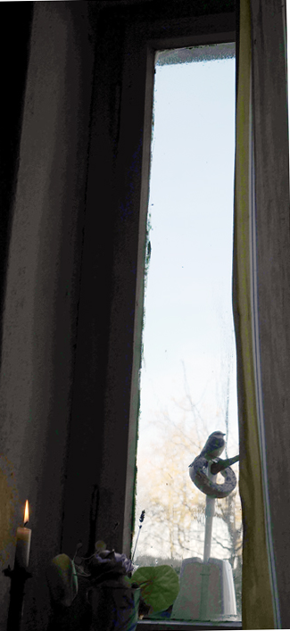 Drinnen das warme Bad tut gut und die Meise muss draussen bleiben, gut versorgt.