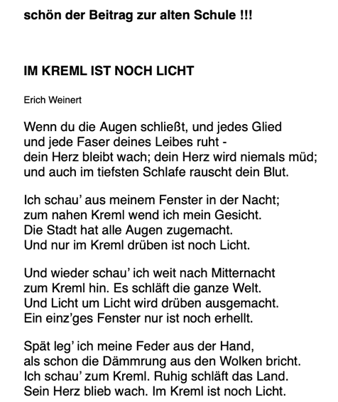Anfrage aus dem Goethe-Gymnasium in Riistock zum aktuellen Jubeläum, damals G-Schule, etwas Kurzes zu schreiben, am besten eine Anekdote.