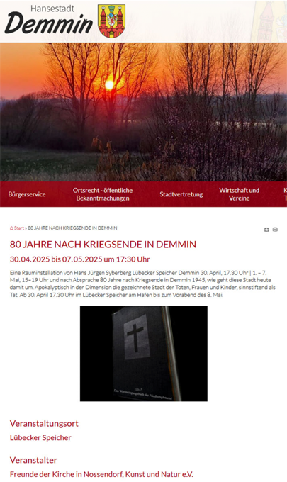 Da oben sind sie nun die Bilder des Brennenden Demmin . Karl Schlösser bald mehr.