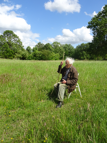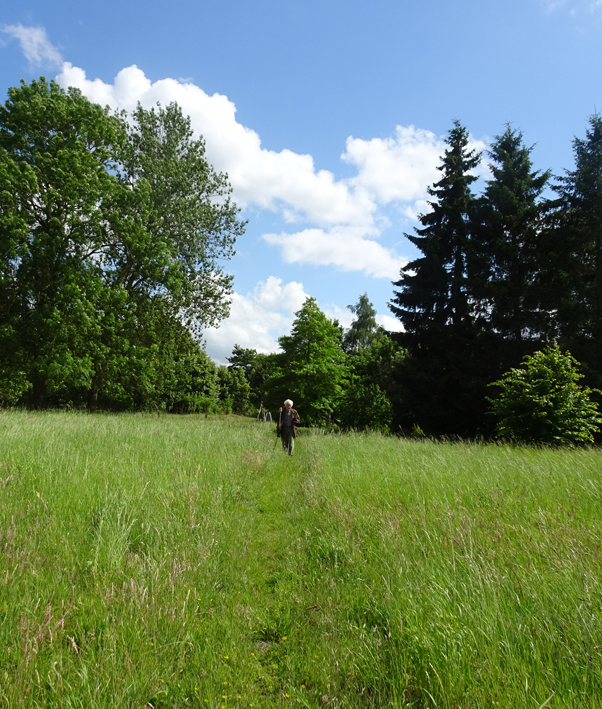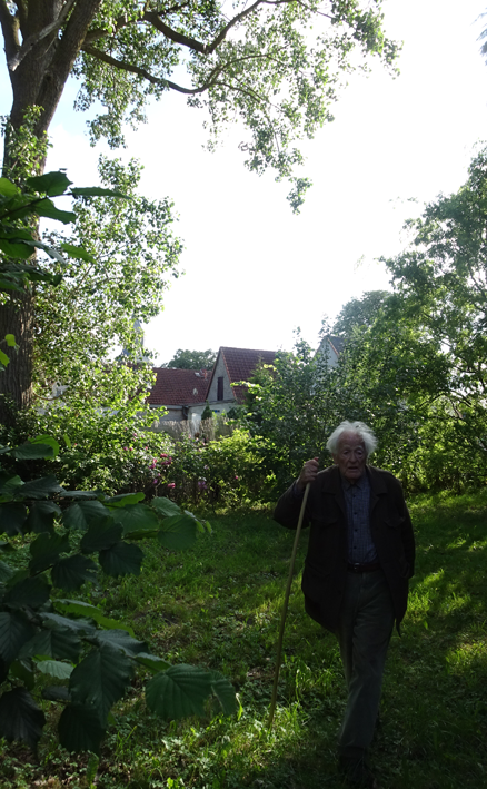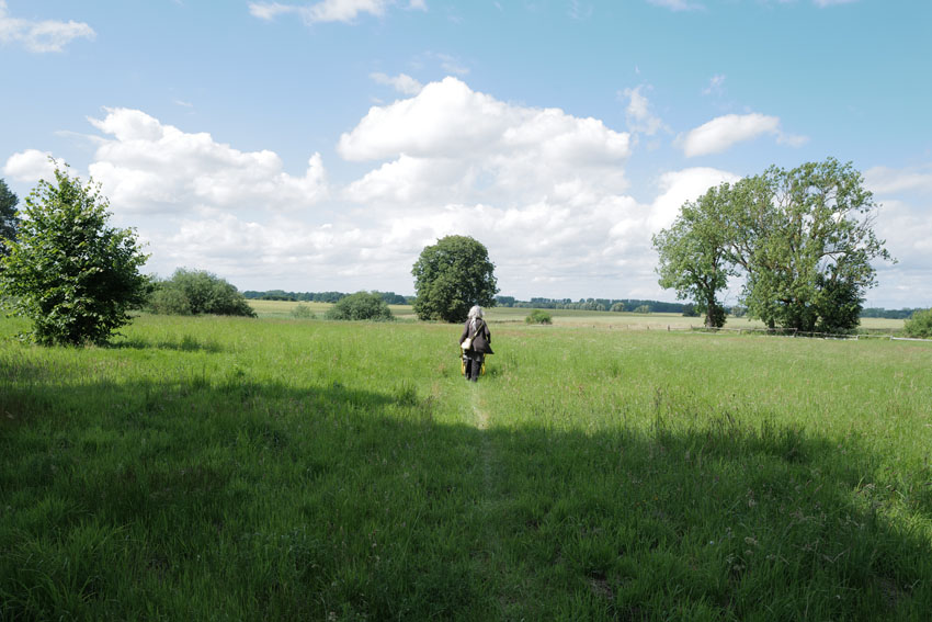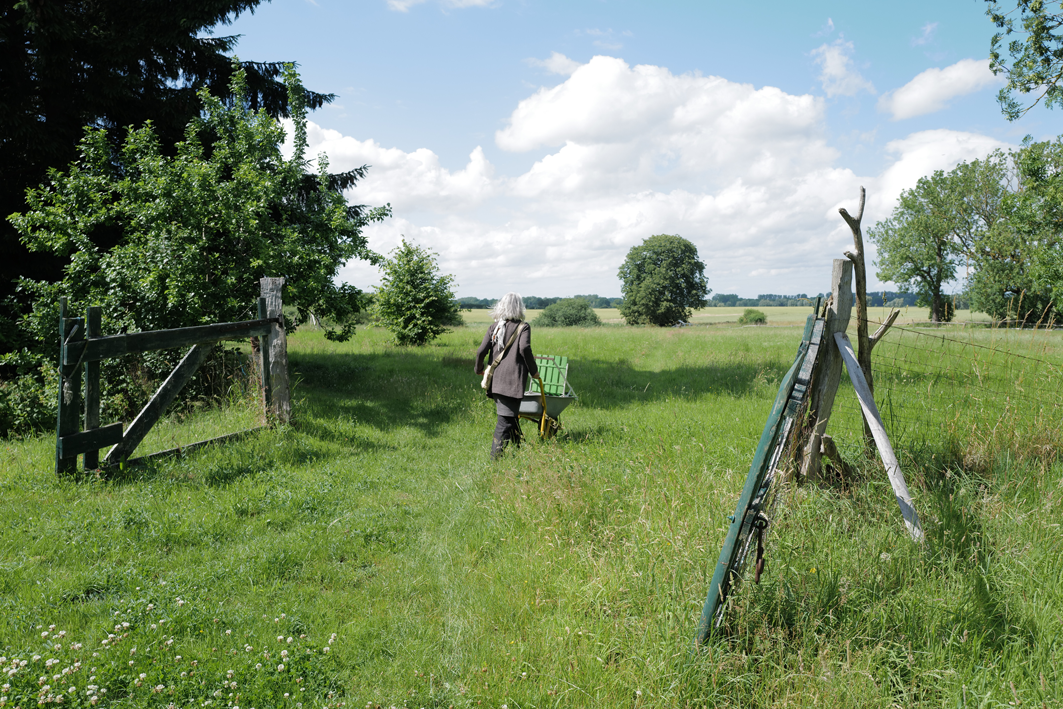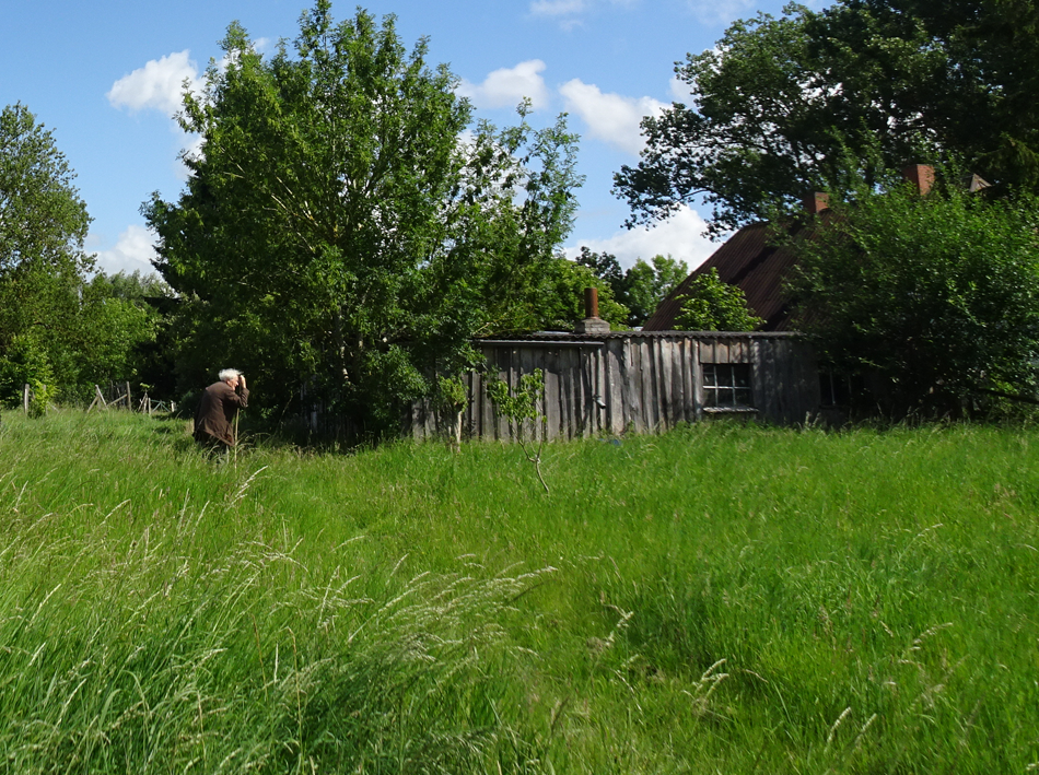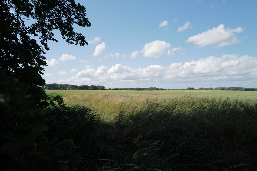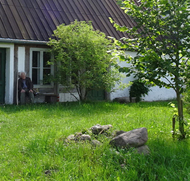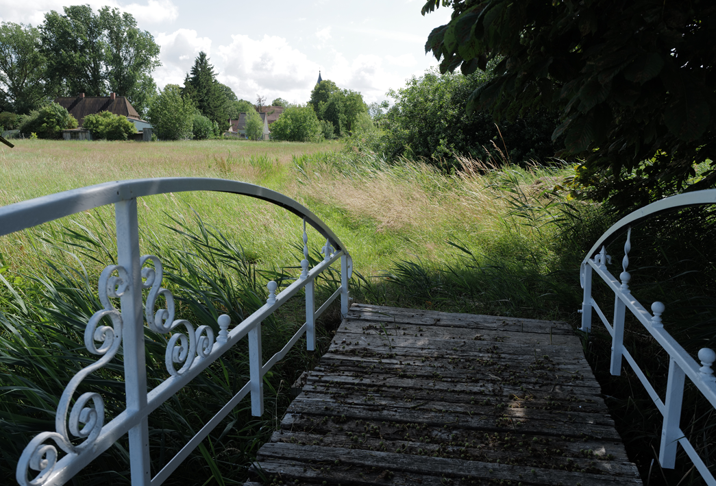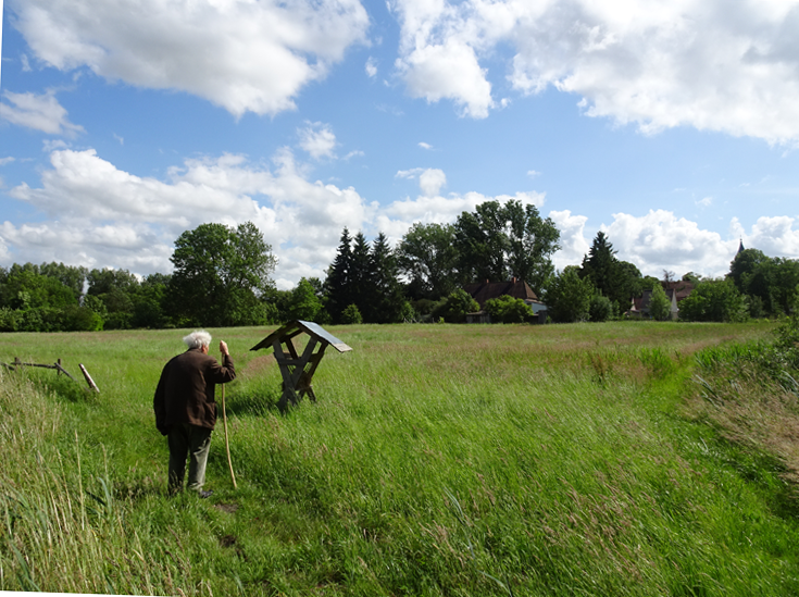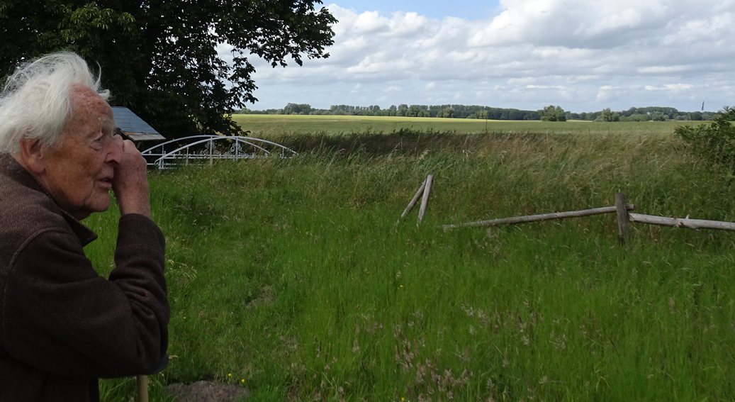 im Haus auf dem Wäscheboden die kleinen Schwalben geschlüpft mit der weiten Blick über Koppeln Graben Brücke Feöder bis zum Wald