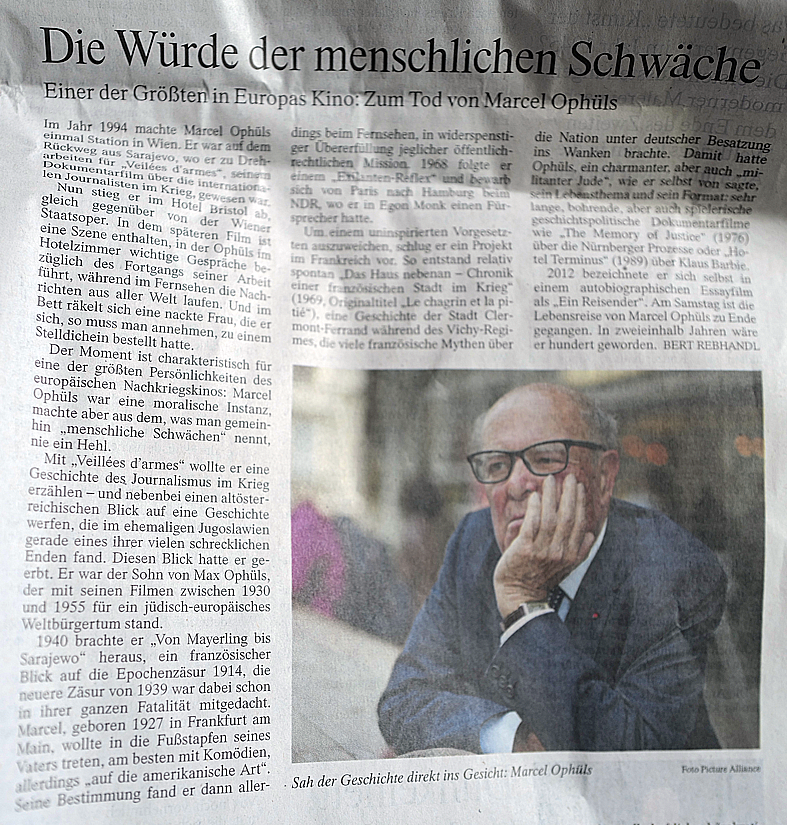 Diese Siuation vor uns. Dort die Film mordende Existenz und hier das ewige Trotz Dem. Immer den armen MO. vor Augen. machten wir den Vertrag. Und es kam wie vorauszusehen. Er verlangte Kürzungen oder das Geld zurück. Meine Frau sah unser Haus als Garantie eingesetzt, verloren und er lachte. Am Ende kamen wir durch, der Film wurde gekürzt für das Ausland im TV, aber dann auf Festivals in voller Länge auch mit Erfolgen für die BBC. Und Eichinger, der dabei war in London, mit dieser Lösung, sagte was gelernt fürs Leben auch in Hollywood, Marcel O. aber wurde 97 mit noch viel Erfolg. Erinnerungen an einen, den ich nie kennengelernt und doch an der Wiege eines entscheidenden Schritts, mit dem Deutschland ins Boot, kam wie Frankreich schon zuvor. Ein wichtiges Boot für alle.