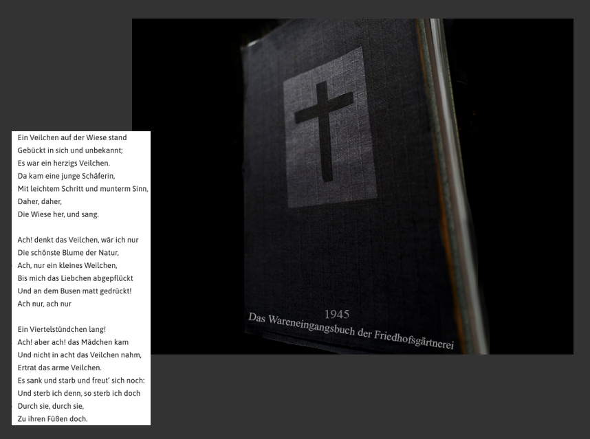 Es ist dies schwarz eingebundene Wareneingangsbuch aus der Friedhofsgärtnerei von Demmin in dem die Namen der Toten 1945 eingetragen sind, wie sie aus dem Flüssen und auf den Strassen geborgen wurden.