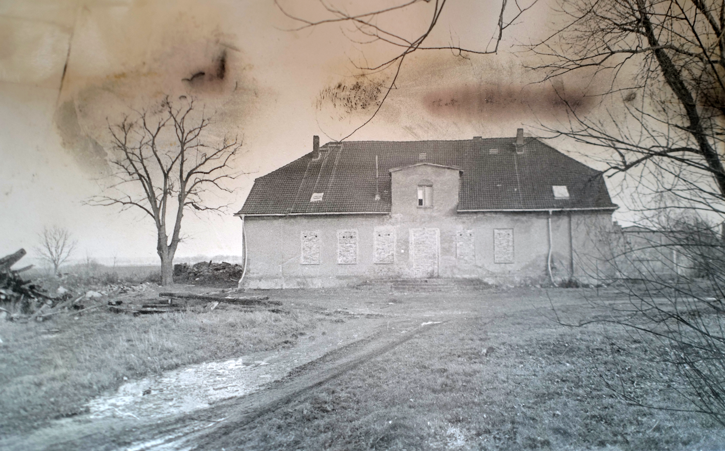 3 Fotos aneinander montiert damals. Links der Reste der Zur LPG - Halle gewordenen Scheune ursprünglich