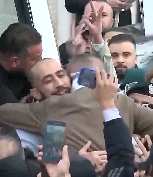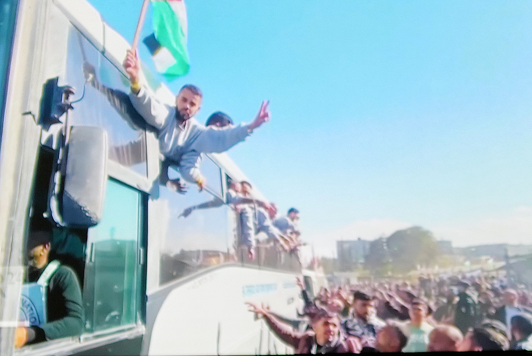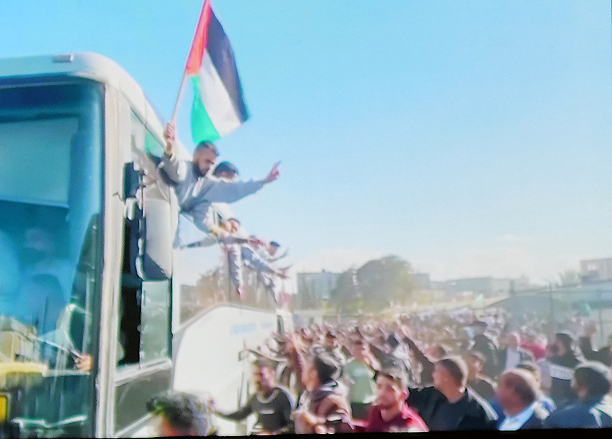 wovon hier an diesem Tag niemand sprach an keinemTisch, nicht im Sitzen nicht im Stehen und doch immer da. 3 zu 90 Geiseln-Gefangenen. Geben-Nehmen. Austausch. Der Hochmut ist teuer. 484 Tage gegen 20, 30 Jahre.
