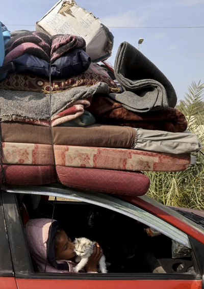 Sie haben ihnen die Häuser genommen, die Kinder und Frauen getötet, die Namen der Führungen gelöscht. das Land verwüstet, nun steht es auf und gehen zu Fuss, endlose Massen von Menschen mit ihrer letzten Habe über die zerstörte Erde.