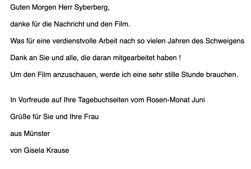 1.Antwort auf das Zusenden des Films