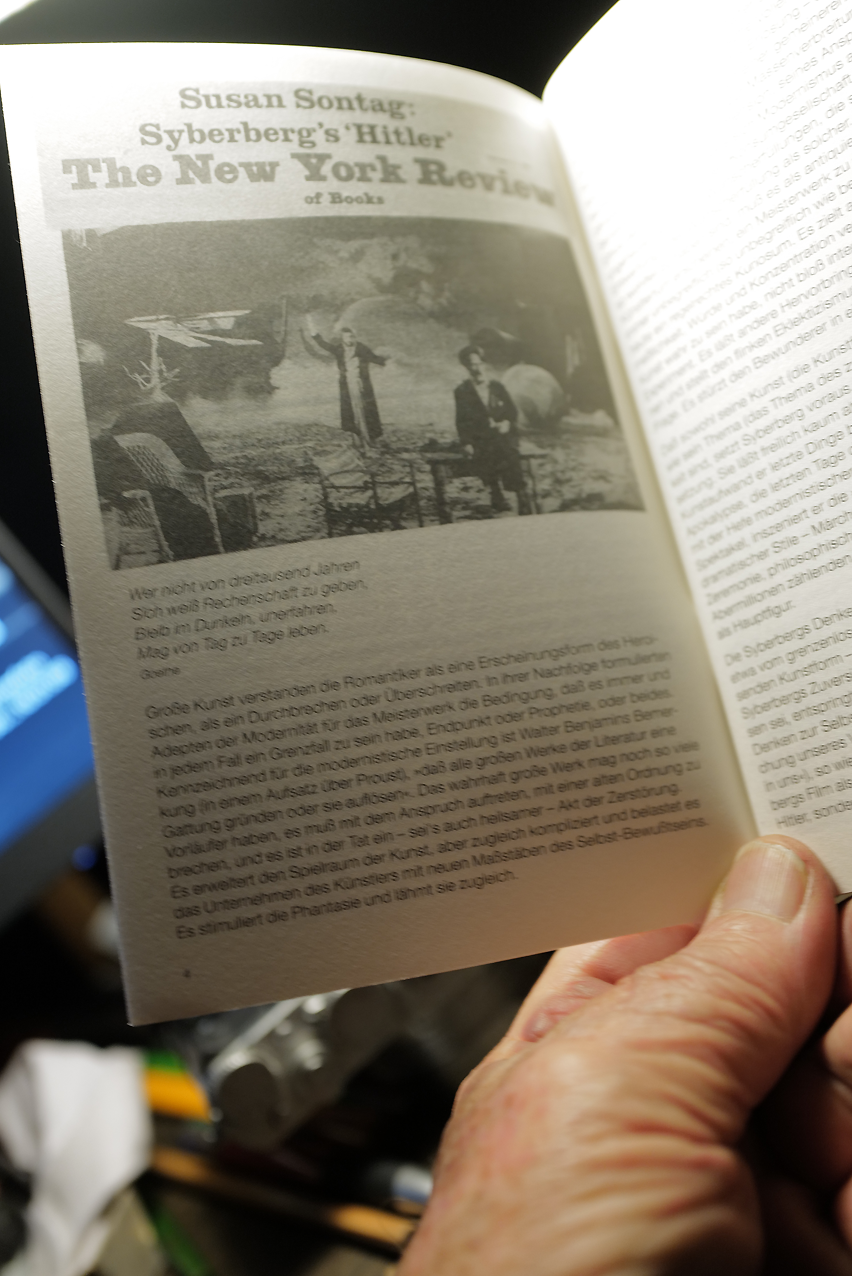FAZ gestern 30. 5. 2025 Ein Ausstellungsbericht in München zu Susan Sontag. Leben und Werk mit besonderem Vermerk ihrer besonderen Anmerkungen zu Deutschland. Da fällt auf, dass der zentrale Text von ihr zu Hitler und das in einem Film aus Deutschland von 1980 fehlt. Ein Essay von besonderer Ausführlichkeit und zu diesem Thema in Verbindung mit einer filmischen Darstellung aus jüngerer Generation damals nach ihren Texten zu Leni Riefenstahl und zur Fotografie überhaupt nicht ernstgenommen wird. Das ist auch deshalb auffällig, wenn diese Darstellung als Kunstwerk besonderer Art zu diesem Thema und aus Deutschland von einer jüdischen Amerikanerin dieser Aufmerksamkeit und Dimension vorgetragen wird. Warum dies Schweigen. In der Ausstellung und in dieser Zeitung ohne zumindest einer Begründung wenn dies fehlt. Schlecht gearbeitet an allen Stellen, Museum, Zeitung, Kuratorenebene oder Redaktion und kulturelle Aufsicht. Oder Absichten. Schlecht gearbeitet. Das Thema oder Unkenntnis und Abwehr der Filmgeschichte? Aber vielleicht auch alles zusammen als Syndom. Aktuell erschien ein Text bei Haaretz in Jerusalem zur deutschen Siuation nach dem Kriege immer noch und dessen Angst dort aktuell in Sachen Waffen für Israel und unserer Staatsraison mit welchen Folgen nun. Eben darum war Susan Sontag wichtig, damals und hiesse es heute sie zu verpassen, wenn, liesse man aus, was auch damals bis heute zu schlechter Arbeit und Kunst führte mit allen Gewerben drumherum. Medien und Politik. Oder Literatur und Universitäten. Es gibt von Susan Sontag keinen vergleichbaren Text zu diesem unvergleichlichen Thema. Wie das darzustellen und eben hier. Was sie wunderte diesen Fim über ein Duzend Mal angesehen zu haben und warum. Geschrieben nach ihrer ersten Krankhauserfahrung vor dem Tode, mit dem Schwur danach nie mehr einen Essay zu schreiben. Wie eben dann doch noch diesen. Auszulassen nun in Deutschland selbst auf allen Ebenen? Schweigend wie Haaretz (Gidon Levy 28.5.2025)das nennt als die deutsche Schuld. Mit welchen Folgen sehen wir täglich nun.