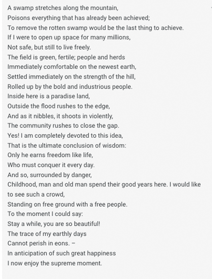 Die letzten Worte Fausts seit Schultagen 1951in Rostock im Gedächnis