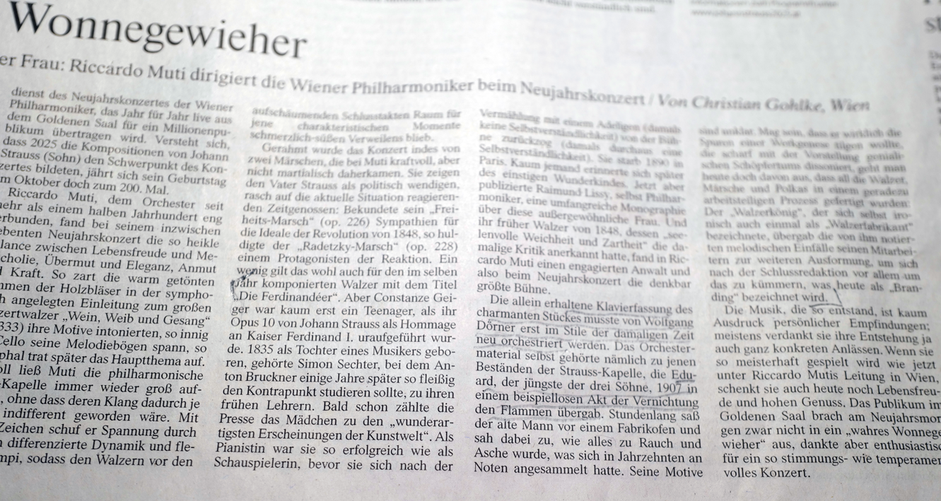 Und aus der FAZ noch Aktuelles zum Neujahrskonzert aus Wien nachgetragen zwei interessante Anmerkungen. Aus denen hervorgeht wieviel Werkstatt in dem ist was wir gerne als Musik non Strauss so hören.