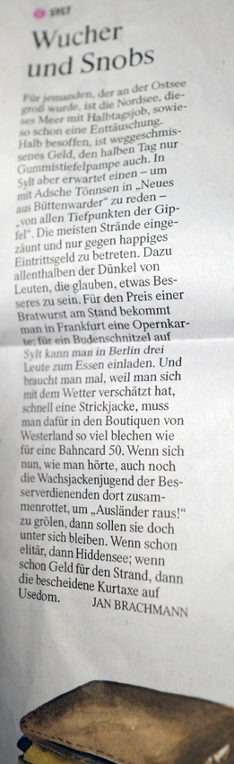 Aktuelle Reiseseite in der FAZ