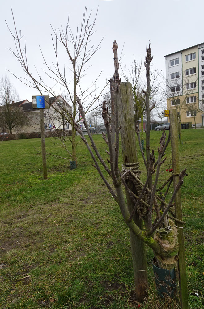 Eine kleine Allee über die leeren Hinterhöfe des ehem. Marktes in Demmin, mit Hilfe des VorPommern Fonds entstanden, im Programm Machbarkeits-Studie.