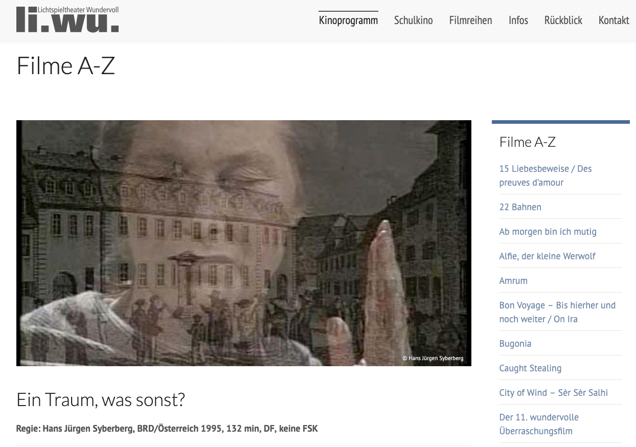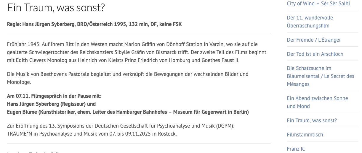 Was für ein Thema: Traum und Film! und das, schon damals vor 30 Jahren. Auch Theater dazu. So wird es doch vielleicht spannend. Als ein gesprochenes Wunder von Edith Clever.