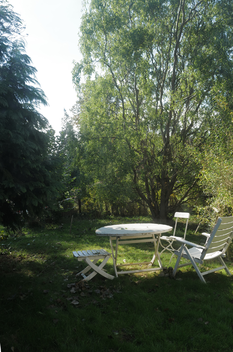 Und im Garten den Tisch schützend gepfanzte Weiden nutzend.