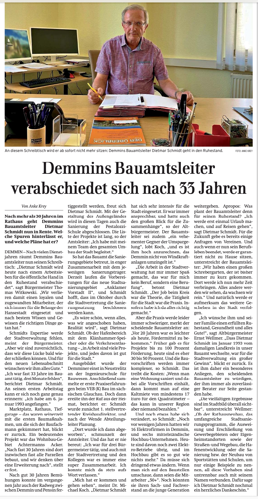 In Demmin Abschied des für Bauten zuständigen Mannes nach 33 Jahren. DDR-Erbe des Untergangs eines kleinen Ortes mit weltweiter