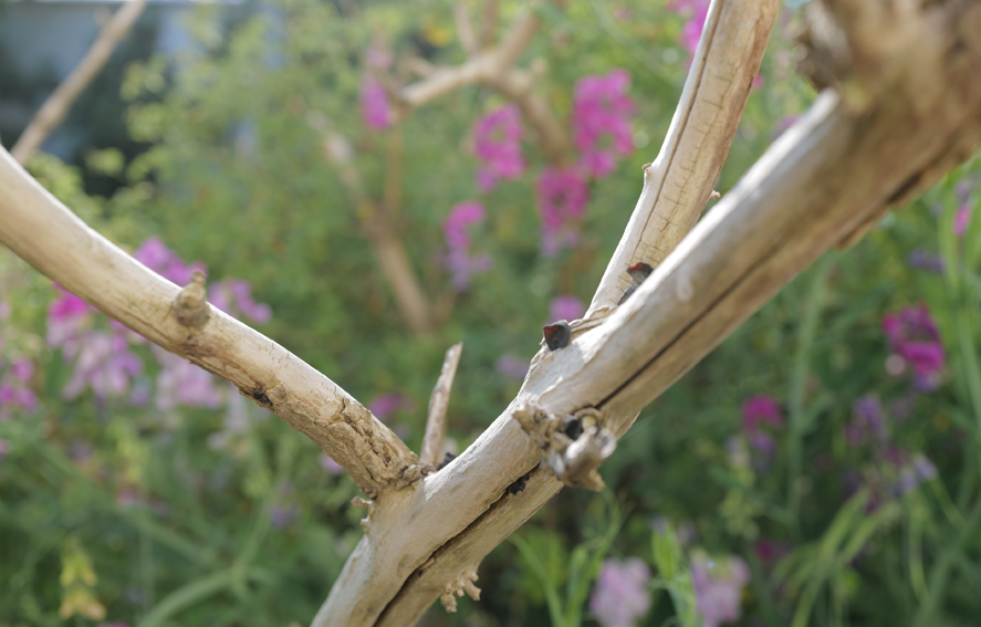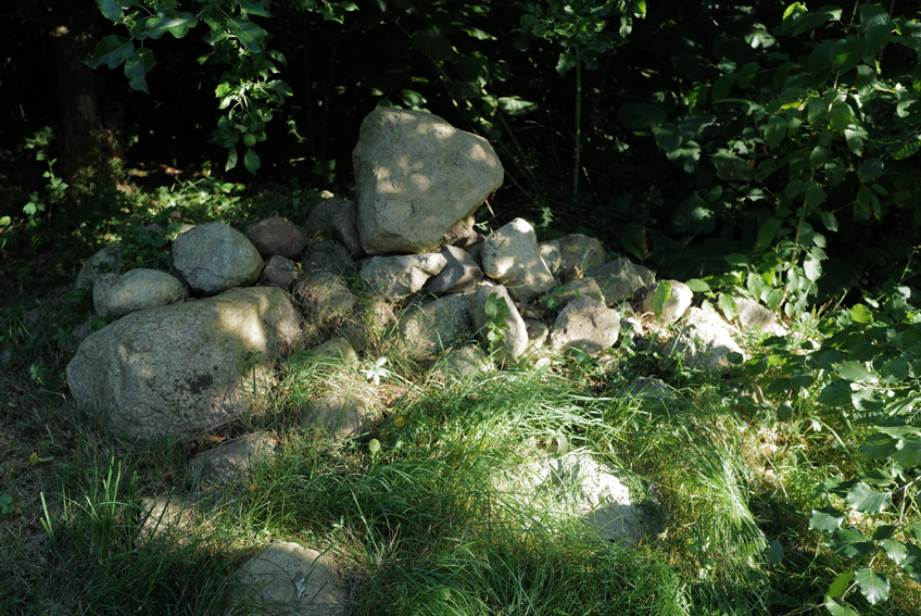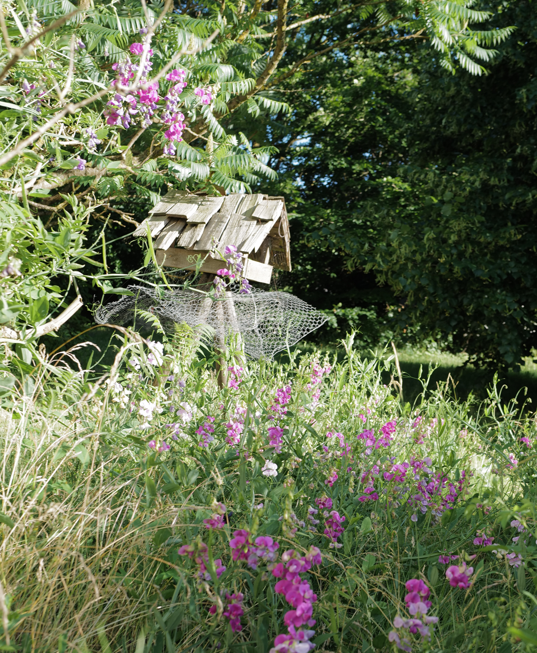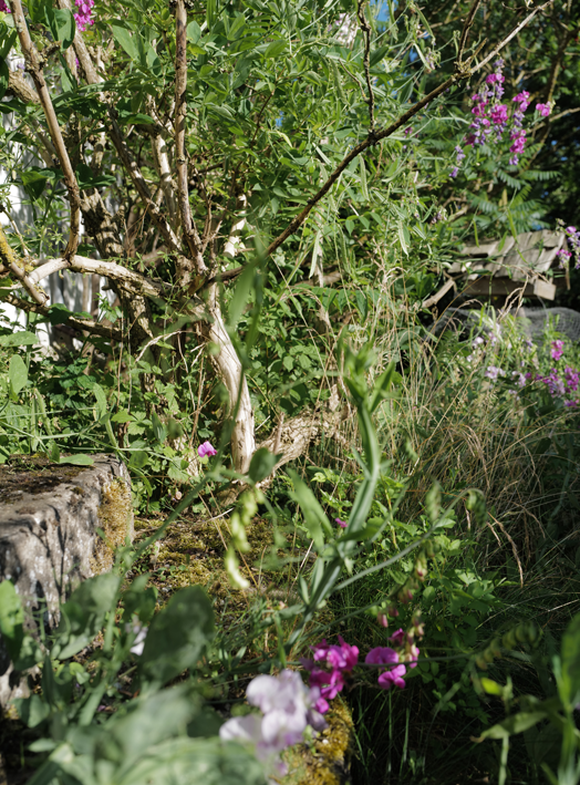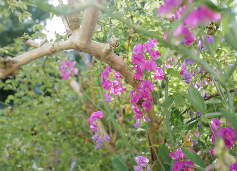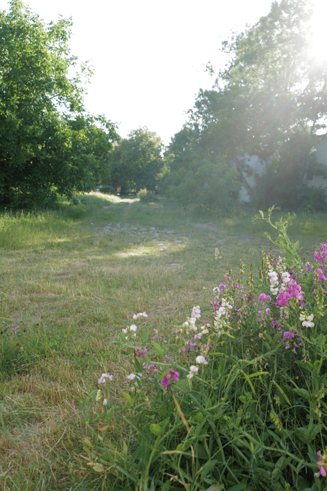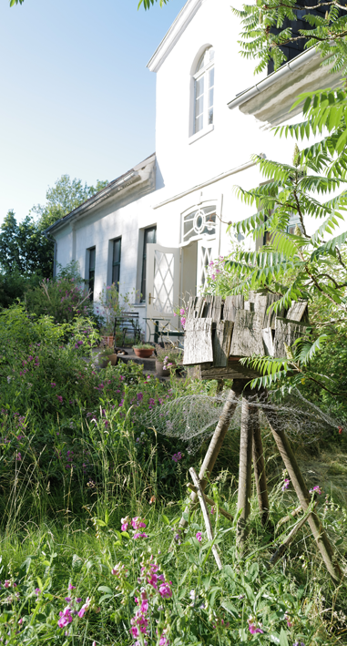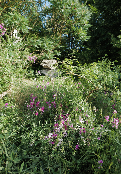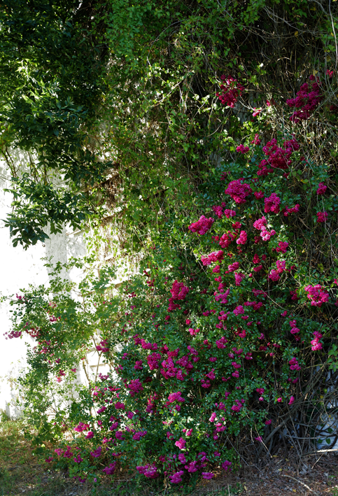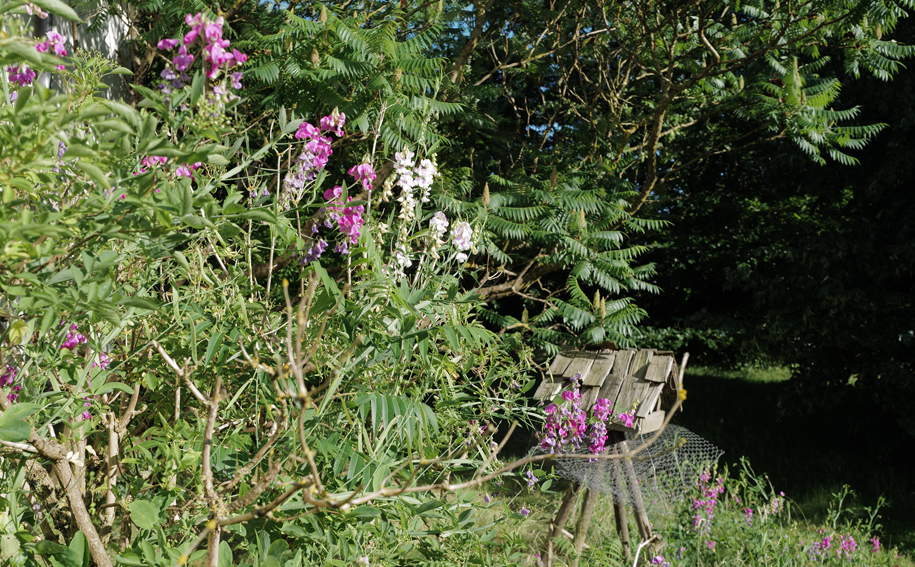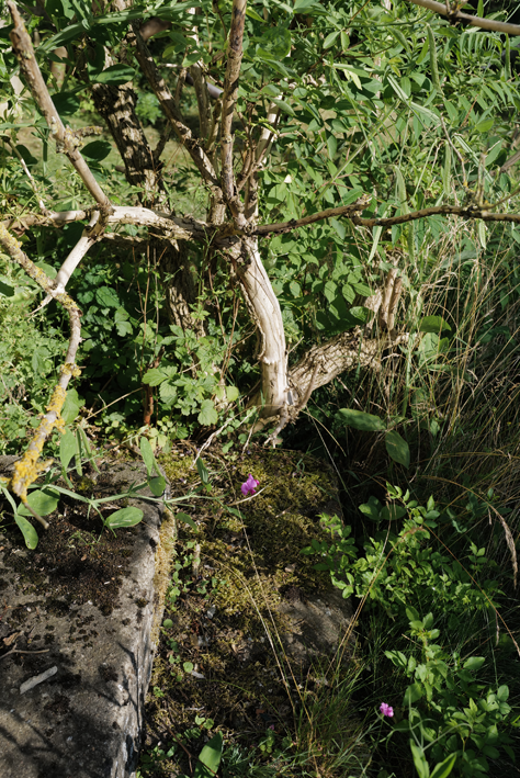 und wo früher die Scheune war für das Stroh und Heu der Pferdeställe und Schweine, mit den Höhlen drin für uns Kinder, nun die Rosenwand