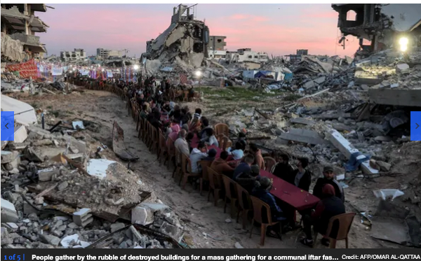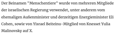 Die FAZ spricht von manipolativen Videos, wenn sie das, was in Gaza geschieht, als kulturelle Installation zwischen den Ruinen, darstellt in einem Bilde wie einen Müllhaufen von PlastikMenschen, die von den Netanjahus nun verurteilt werden abzuhauen oder wie Schrott zu entsorgen. Dagegen stehen die Bilder dieser Leistung zu überleben.