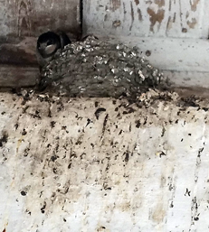 Schwalben auf dem Wäsche-Boden, wieder bei uns, zähle bei Futterannahme 3-4.