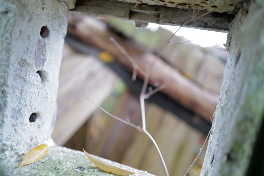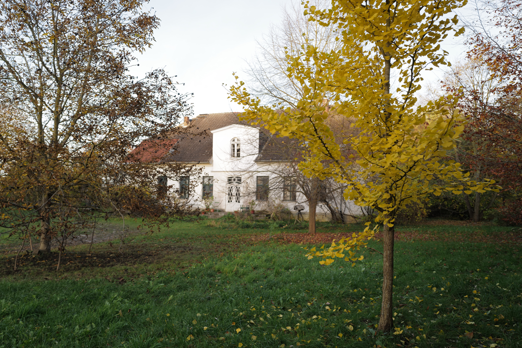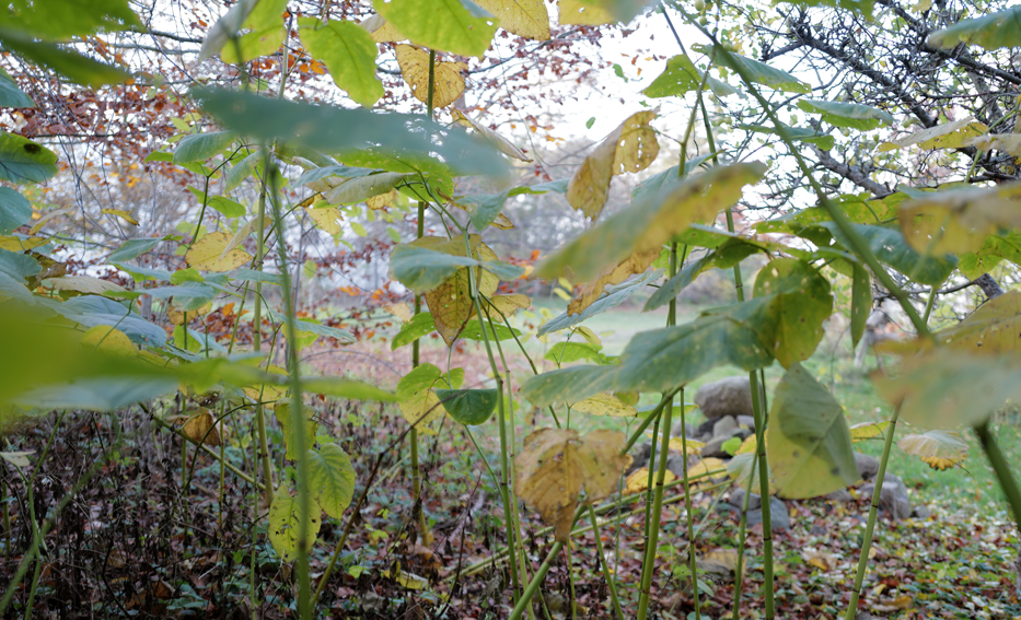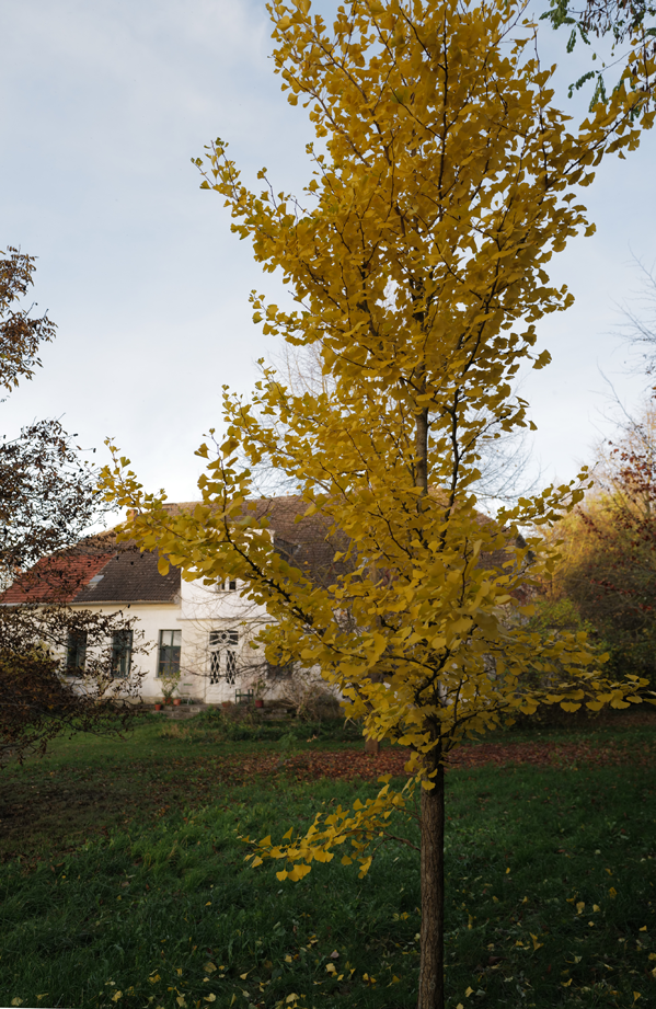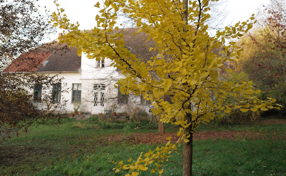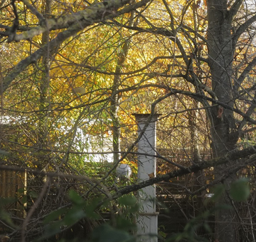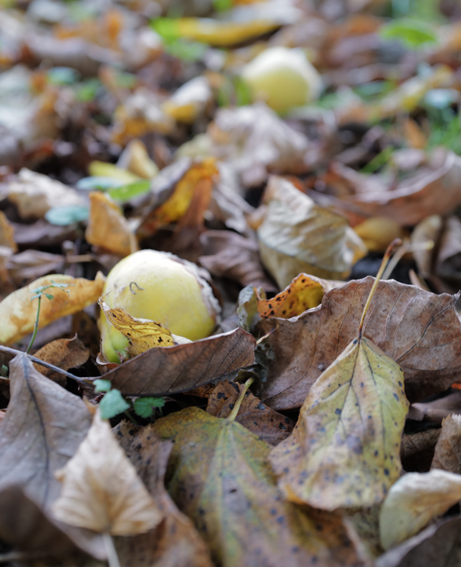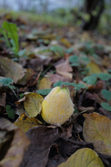 Aus dem Fenster am Morgen die Sonne im Laub und die Quitten zu Füssen