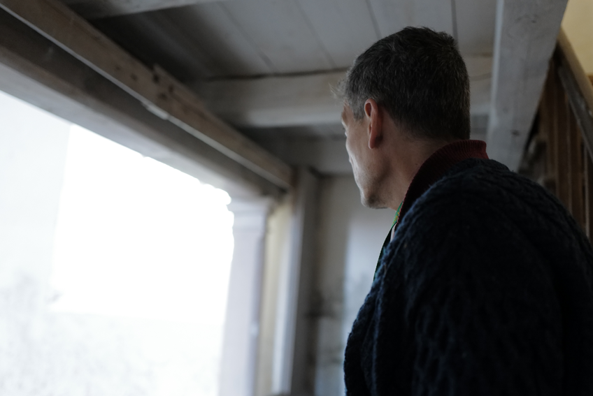 dann da auf der anderen Seite früher Fenster und alles blau wir der Altar