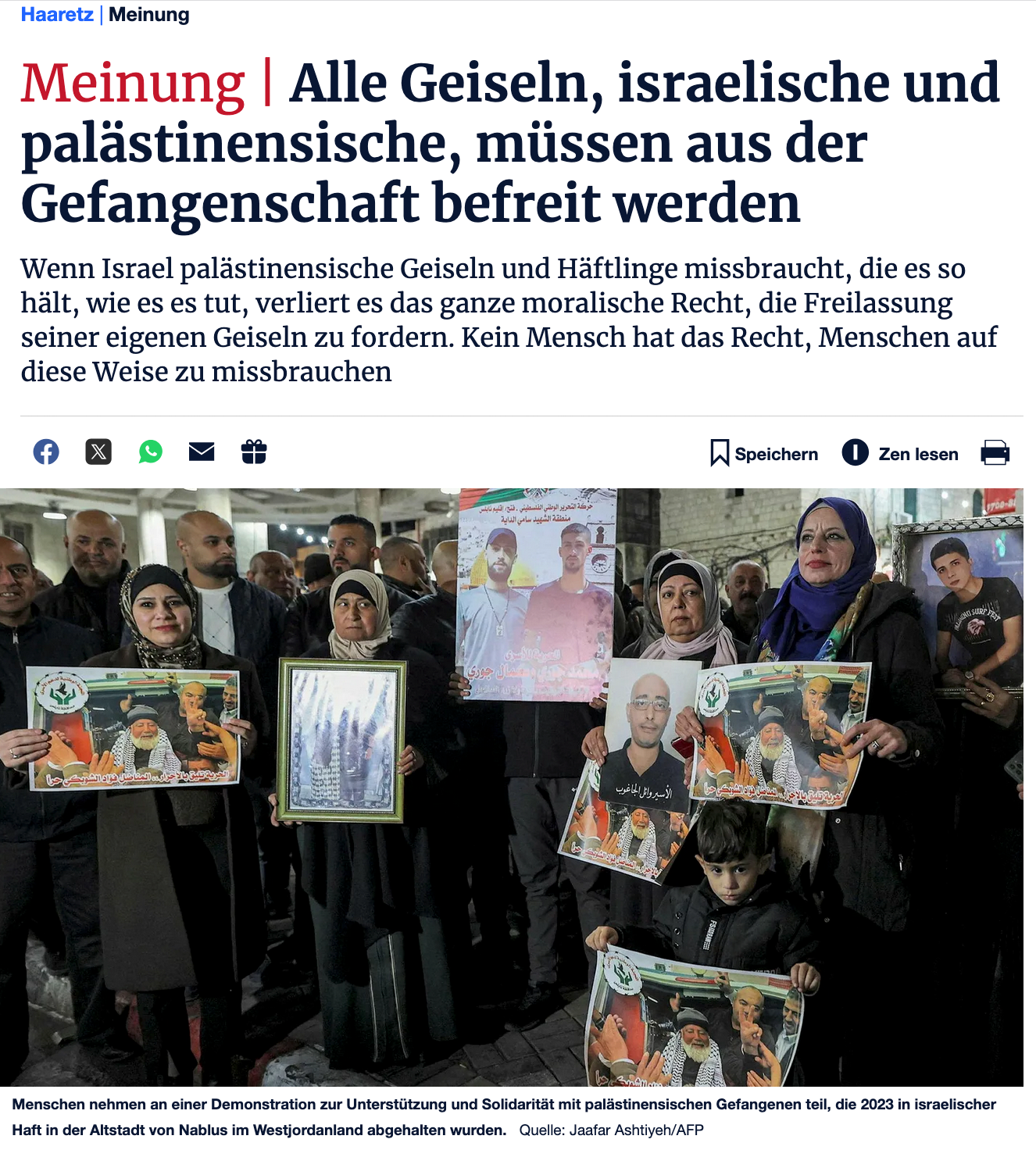Die dringendste Notfallmaßnahme, die jetzt erforderlich ist, neben der Beendigung der Massaker in Gaza, ist die Rettung aller Gefangenen, Israelis und Palästinenser, von den abgrundtiefen Bedingungen, unter denen sie festgehalten werden. Die Gaza-Tunnel oder das Megiddo-Gefängnis, die Hamas-Gefangenschaft oder die Gefangenschaft von Shin Bet sind fast unbeschreiblich böse. Es ist schade, dass kein einziger Verwandter der israelischen Geiseln dazu aufgerufen hat, auch die palästinensischen Geiseln freizulassen oder zumindest ihre Haftbedingungen zu lockern.