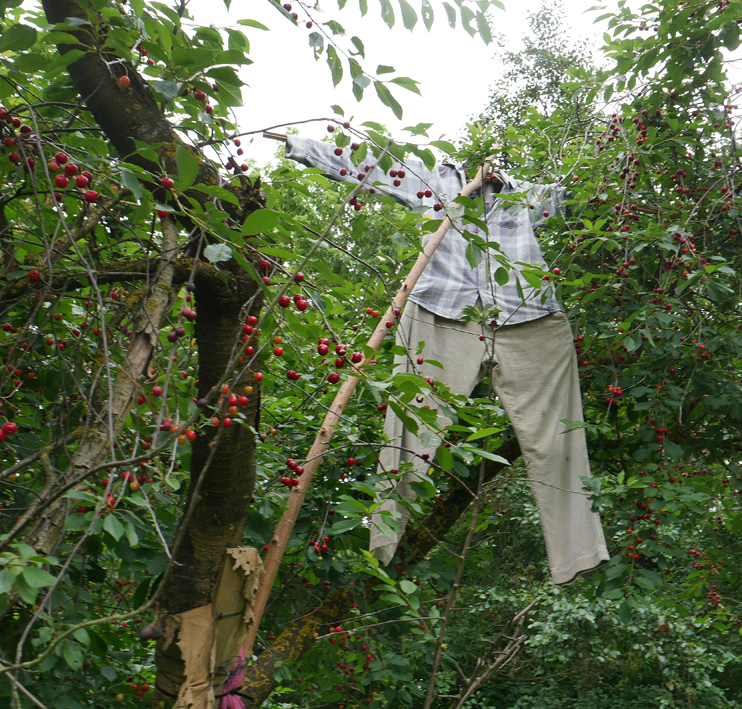 sie macht den Menschen nach im Baum und das mögen Stare nicht- Kirschen gerettet, so einfach ist das. Aber wissen das die Stare auch? wir hoffen das, davon lebt das System.
